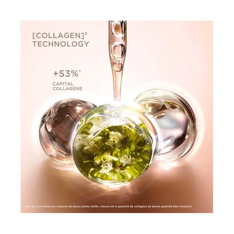 Au cœur de sa formule, la technologie exclusive*** [COLLAGEN]3 TECHNOLOGY cible la quantité, la qualité et la structure du collagène*. Un puissant trio d’actifs pro-collagène pour une action ciblée qui aide à améliorer la fermeté de la peau :