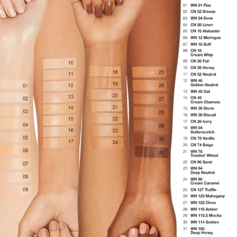 Ingredients: WaterAquaEau, Methyl Trimethicone, Trimethylsiloxysilicate, Dimethicone, Butylene Glycol, Phenyl Trimethicone, Neopentyl Glycol Diheptanoate, Niacinamide, Hydroxyethyl Urea, Lauryl Peg-9 Polydimethylsiloxyethyl Dimethicone, Glycerin, Sodium Polyaspartate, Ascorbyl Glucoside, Caffeine, Phytosphingosine, Magnesium Ascorbyl Phosphate, Resveratrol, Sodium Hyaluronate, Polygonum Cuspidatum Root Extract, Acetyl Hexapeptide-8, Palmitoyl Hexapeptide-12, Tocopheryl Acetate, Tetrahexyldecyl Ascorbate, Salicylic Acid, Sigesbeckia Orientalis (St. Paul’S Wort) Extract, Caprylyl Glycol, Trihydroxystearin, Triethyl Citrate, Ppg-15 Stearyl Ether, Peg-10 Dimethicone, Sorbitol, Trehalose, Micrococcus Lysate, Isopropyl Isostearate, Lecithin, Zinc Stearate, Dimethicone/Peg-10/15 Crosspolymer, Alumina, Triethoxycaprylylsilane, Silica, Glyceryl Polymethacrylate, Laureth-7, Magnesium Aluminum Silicate, Hexylene Glycol, Peg-8, Disteardimonium Hectorite, Propylene Glycol Caprylate, Vinyl Dimethicone/Methicone Silsesquioxane Crosspolymer, Polysilicone-11, Sodium Hydroxide, Xanthan Gum, Sodium Chloride, Citric Acid, Ammonium Acryloyldimethyltaurate/Vp Copolymer, Dipropylene Glycol, Bht, Disodium Edta, Sodium Citrate, Potassium Sorbate, Phenoxyethanol, [+/- Mica, Titanium Dioxide (Ci 77891), Iron Oxides (Ci 77491), Iron Oxides (Ci 77492), Iron Oxides (Ci 77499), Bismuth Oxychloride (Ci 77163)] *