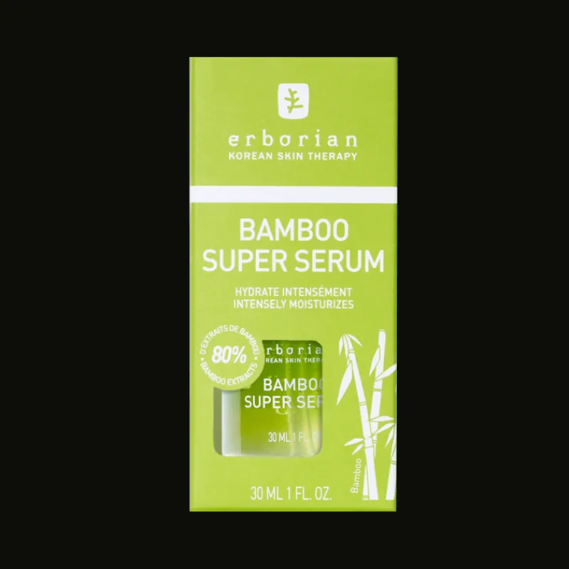 Chez Erborian, nous faisons confiance à nos super ingrédients coréens. Ils ont une place de choix dans notre flacon : leurs extraits sont incorporés à 80%. BAMBOO SUPER SERUM, enrichi en Acide Hyaluronique, recharge intensément et durablement* la peau en eau et lui procure une sensation de confort tout au long de la journée. La promesse d’une peau comme repulpée d’hydratation, d’un teint frais et radieux, dans une texture étonnante qui se transforme instantanément en eau au contact de la peau ! En bonus ? Un prébiotique, pour contribuer à maintenir l’équilibre cutané et ainsi préserver l’hydratation de la peau. *Test d’efficacité (par cornéométrie) sur 10 personnes durant 24 heures.