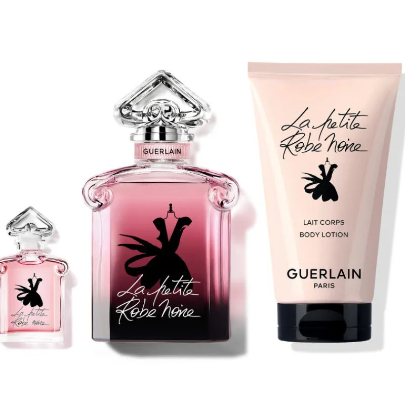 – L’Eau de Parfum Intense La Petite Robe Noire (50 ml et une miniature 5 ml), un sillage floral gourmand irrésistible. La rose iconique de La Petite Robe Noire est sublimée par des notes fruitées de myrtille et de framboise. Un zeste de bergamote accompagné de muscs blancs et d’un accord boisé santal-patchouli signent une fragrance au sillage exquis et inoubliable.