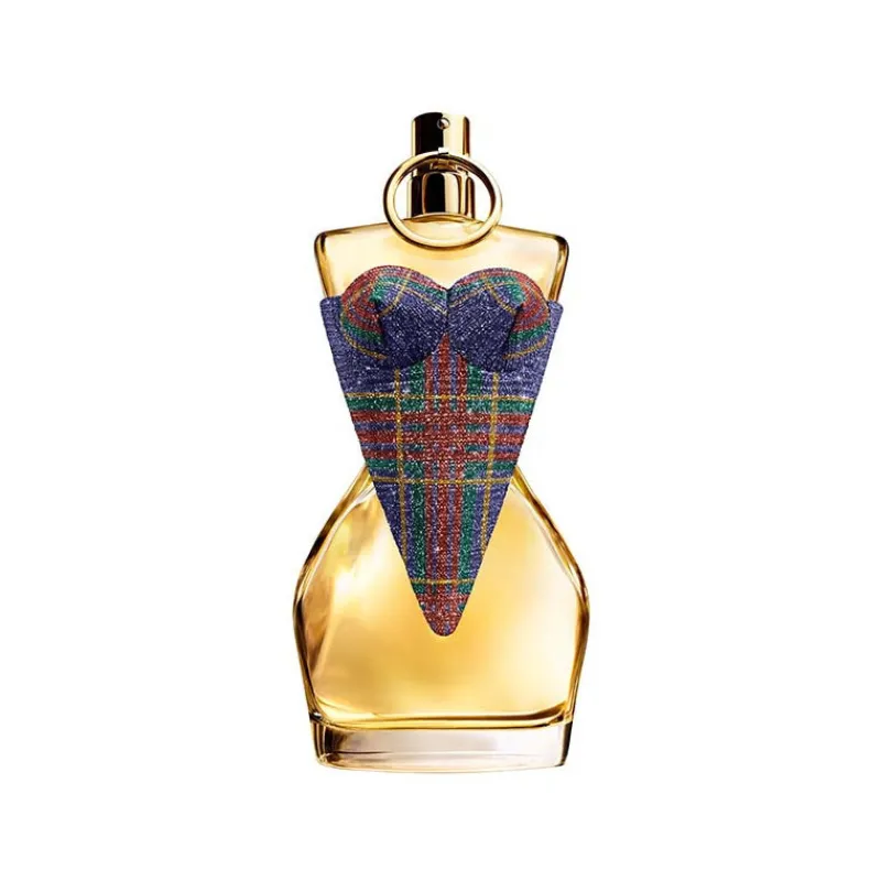 Pour les fêtes de fin d’année, Gaultier Divine irradie avec son collector au corset en tartan scintillant. Sur son sillage floral gourmand, un lys solaire, une meringue fondante, un sel qui bouscule les sens. Son eau de parfum nous enflamme, l’hiver se fige, un frisson divin nous traverse. Corset étincelant, flacon doré, elle fait de la glace son podium. Sur cette étoffe le ciel scintille, et son pas sûr fissure le givre. Le désir brûle, brille, puis s’incline, saisi par l’or de ses reflets. Et si la neige est sa complice, la nuit la rend inoubliable.