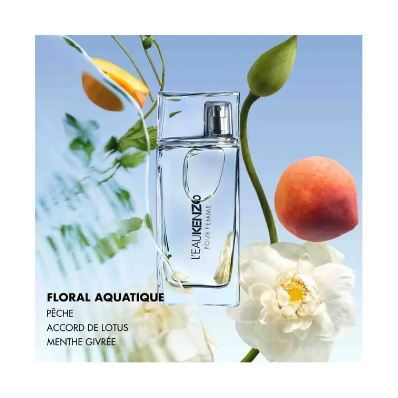 Un sillage inchangé : L’EAU KENZO s’inspire d’une nature généreuse, et capture en chemin ses parfums de fleurs, de fruits, de fraîcheur et de bonheur. L’EAU KENZO pour Femme est une Eau de Toilette florale, fruitée et aquatique signée Olivier Cresp : une fleur de Lotus caressée par une brise givrée et accompagnée de notes juteuses de Pêche.