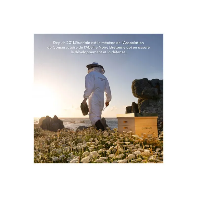 ¹Soin traitant cosmétique au miel. ²Chez Guerlain. ³Conformément à la norme ISO 16128. ⁴Polissage Tissulaire. ⁵Apaisement de l’Inflammation. ⁶Scellage de l’hydratation. ⁷Renouvellement de l’Elasticité.