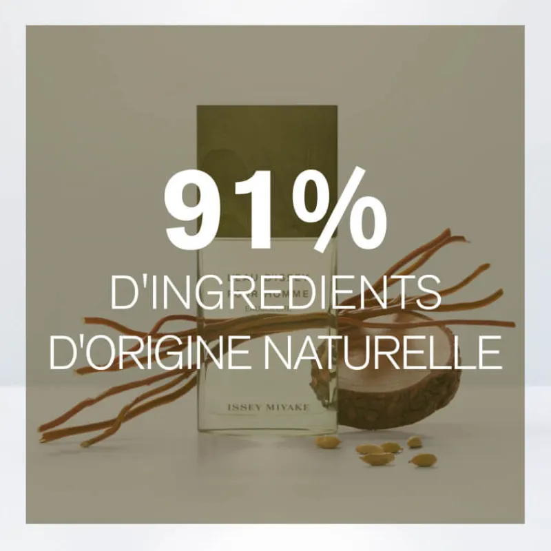 Le flacon de L’Eau d’Issey pour Homme Eau & Cèdre se compose de 20% de verre recyclé PCR. Chaque capot en bois de frêne est unique par sa couleur et son veinage. La fragrance elle-même est vegan et se constitue de 91% d’ingrédients d’origine naturelle.