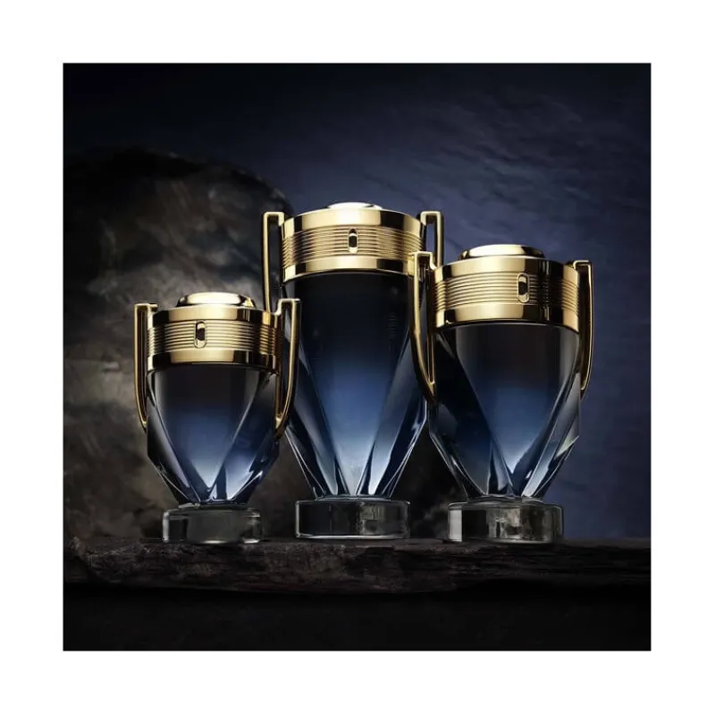 Couronné d’un capot en or, le flacon trophée iconique de ce parfum intense pour homme atteint de nouveaux sommets.
