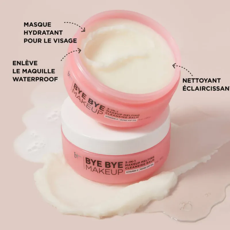 Le baume démaquillant fondant 3-en-1 Bye Bye Makeup est un démaquillant et hydratant 3-en-1, qui prend soin de votre peau.