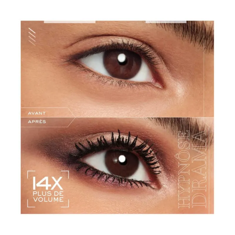 Le pouvoir volumateur d’Hypnôse Drama associé aux bénéfices d’une formule waterproof. A l’application un volume impact. A chaque passage, la brosse convexe, généreuse, étoffe les cils pour un volume irrésistible, tenue extrême jusqu’à 24 heures et waterproof.