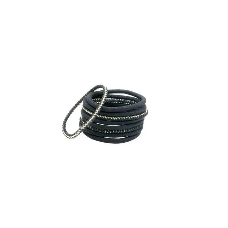 Élastiques épais noirs ornés d’un joli fil lurex or ou noirs ornés d’un joli fil lurex doré pour de belles coiffures en toutes circonstances.