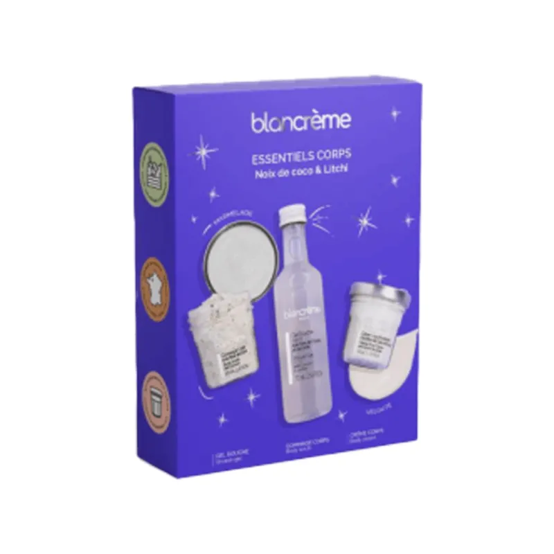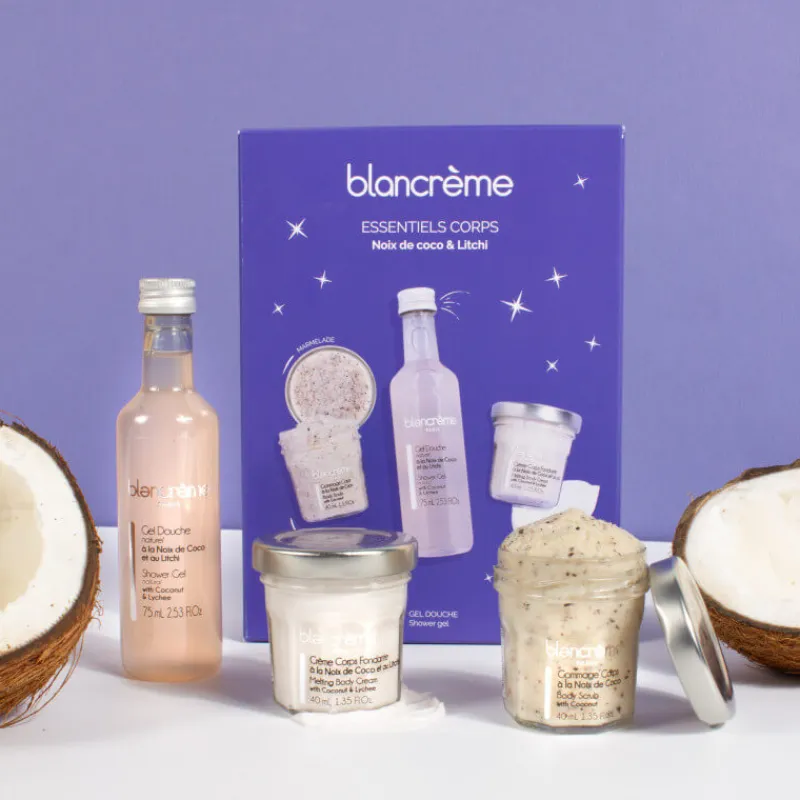 Trio Essentiels Douceurs – Coffret Gel Douche 75 ml + Crème + Gommage Coco & Litchi Gel Douche 75 ml + Crème + Gommage Coco & Litchi de Blancrème