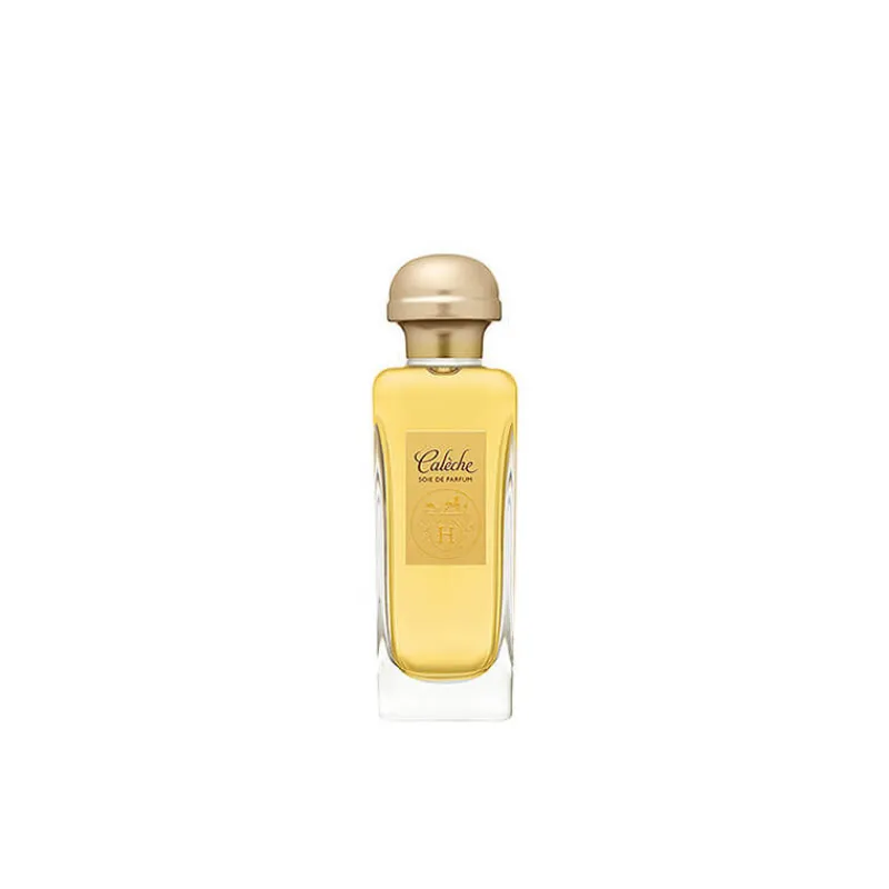 Composé par Guy Robert en 1961, Calèche est le premier féminin de la maison. C’est un floral boisé chypré, d’une grande féminité, dont le nom fait écho à l’attelage emblématique d’Hermès. Calèche est un roman qui brille par la beauté de ses matières premières, de la gaieté des agrumes à la modernité des notes aldéhydées, du cœur floral brodé d’ylang-ylang, de rose et de jasmin, au sillage boisé, chypré, souligné par la noblesse de l’iris.