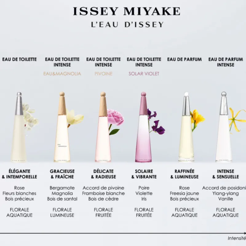 L’Eau d’Issey Eau de Parfum est un parfum féminin ensoleillé, floral et aquatique, avec un sillage boisé. Il apporte plus d’intensité et une facette plus chaude à l’emblématique Eau d’Issey Eau de Toilette.