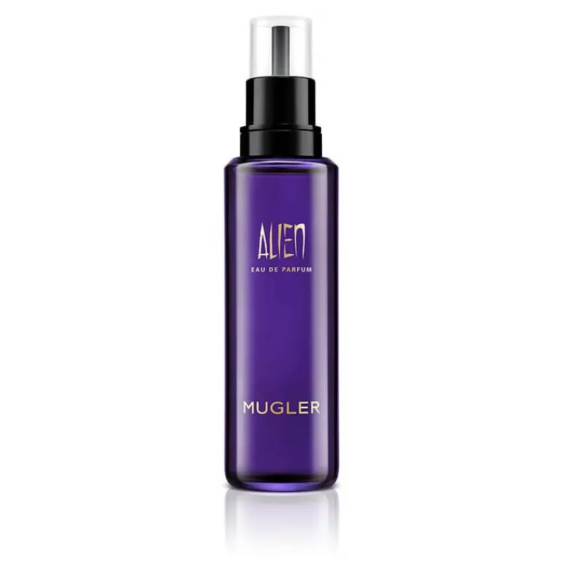 Redonnez-vie éternellement à votre flacon Alien rechargeable grâce à cette Recharge 100 ml. Elle vous permet de remplir votre flacon chez vous. COMMENT RECHARGER VOTRE FLACON ? Dès que votre flacon est vide, vous pouvez le recharger de 2 manières : – A la Fontaine Mugler, présente dans votre parfumerie dépositaire de la marque MUGLER. – Via une Recharge 100 ml à commander en ligne qui vous permet de remplir votre flacon chez vous en 3 étapes : Etape 1: Retirez le capot de votre flacon de parfum Etape 2: Dévissez la tige du spray Etape 3: Versez la fragrance dans votre flacon à l’aide de l’entonnoir Etape 4: Vissez la tige et refermez votre flacon de parfum. Incarnant une déesse solaire, rayonnante et sensuelle, Alien de MUGLER diffuse paix et sérénité dans son sillage, grâce à son parfum talisman. Les notes riches et sensuelles du parfum Alien reflètent la force féminine : un puissant parfum floral aux notes de Jasmin mêlées à des notes boisées et ambrées. Un élixir de sensualité et de féminité facetté autour de 3 révélations qui fusionnent en total harmonie : Révélation solaire Alien se fait solaire, illuminée par le Jasmin Sambac des Indes. Une somptueuse “fleur de soleil” dont la fragilité contraste avec la puissance de son parfum. Une offrande spirituelle, promesse de féminité sacrée. Révélation mystérieuse Alien se fait mystérieuse, sublimée par les notes sensuelles du Bois de Cashmeran. Un bois énigmatique caractérisé par sa note musquée affirmée, et exotique, comme chauffé par un soleil intense qui envoûte les sens. Révélation enveloppante Alien se fait enveloppante, enrichie d’Ambre Blanc. MUGLER a construit un ambre blanc moderne et intemporel. Une note suave et moelleuse comme un “mohair blanc”. Proposée dans son flacon recharge, l’Eau de Parfum Alien vous permet de remplir votre flacon talisman une fois que celui-ci est vide. Un flacon recharge simple et épuré ; un geste responsable pour être sûre de ne jamais manquer d’Alien. Entre tradition et innovation, MUGLER s’inscrit comme une marque avant-gardiste en créant des flacons pérennes et rechargeables.