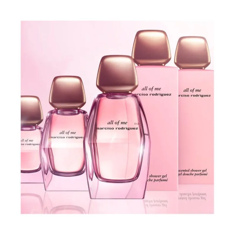 Une célébration de l’individualité et de l’expression de soi, all of me réinvente le parfum floral mêlant la précieuse Rose Centifolia à un Géranium Bourbon singulier, une note traditionnellement réservée aux fragrances masculines. Cette union exclusive de rose et de géranium est scellée par un accord délicat de muscs blancs crémeux, véritable réinvention de la signature iconique de narciso rodriguez.