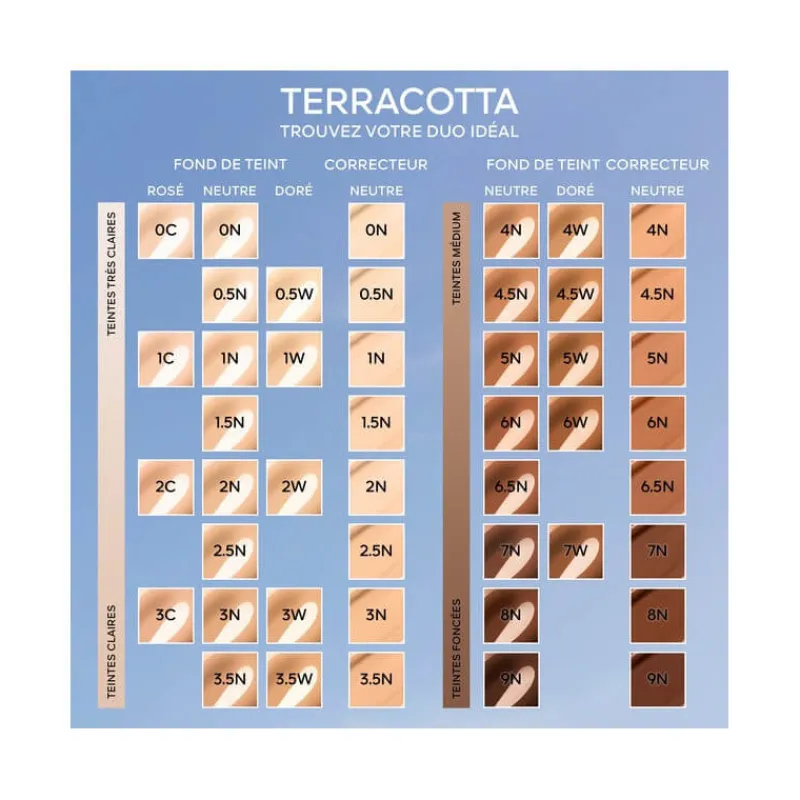 Terracotta Concealer allie le pouvoir longue-tenue d’un anticernes liquide et l’éclat floutant d’une poudre correctrice. Il offre une couvrance exceptionnelle et facilement modulable, en plus d’un résultat ultra-fusionnel et sans transfert.