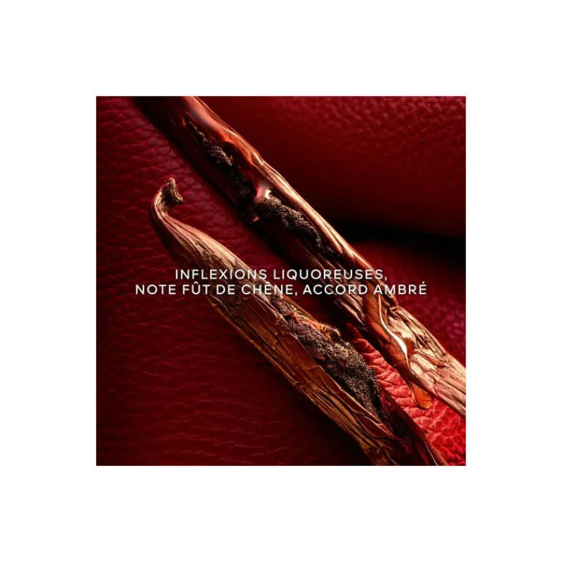 Expression inédite de la signature ambrée d’Habit Rouge, cette nouvelle variation habille son sillage de nuances boisées singulières, aux inflexions moelleuses. Un cœur cuiré épicé magistral, mêlant l’élégance des notes poudrées d’iris aux notes chaleureuses de la noix de muscade. Secret de sa séduction inimitable, son fond ambré est construit autour de deux essences luxueuses de vanille : l’absolue et la teinture, fabriquée selon un savoir-faire Guerlain ancestral. Facetté par des notes de fût de chêne, profondes et boisées, ce sillage sensuel déploie une signature racée d’une richesse remarquable.