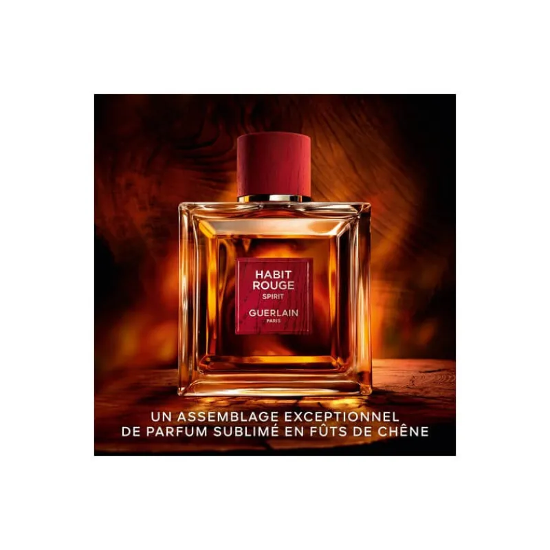 Delphine Jelk, Directrice de la Création des Parfums Guerlain & Parfumeure, célèbre l’âme pionnière de la Maison en inaugurant un procédé inédit chez Guerlain d’assemblage de parfum sublimé en fûts de chêne et infusé de leurs notes boisées caractéristiques. Porté par l’audace, Habit Rouge Spirit exprime la vision d’un luxe devenu rare : le temps. Au contact prolongé du bois, cette nouvelle variation développe ses notes caractéristiques. S’ensuit un travail minutieux d’assemblage pour trouver l’équilibre idéal entre les fragrances issues des deux fûts et donner ainsi naissance à une composition singulière, qui offre une nouvelle signature à l’iconique Habit Rouge.