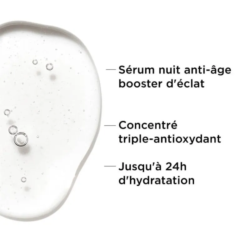 Sa formule puissante est infusée d’un mélange breveté de trois antioxydants (TRI-AOX) : la vitamine C, l’acide férulique et la polydatine qui agissent en synergie pour donner instantanément à la peau une sensation de douceur et de souplesse et une apparence rafraîchie et éclatante. Utilisez-le tous soirs pour obtenir des résultats encore meilleurs au fil du temps.