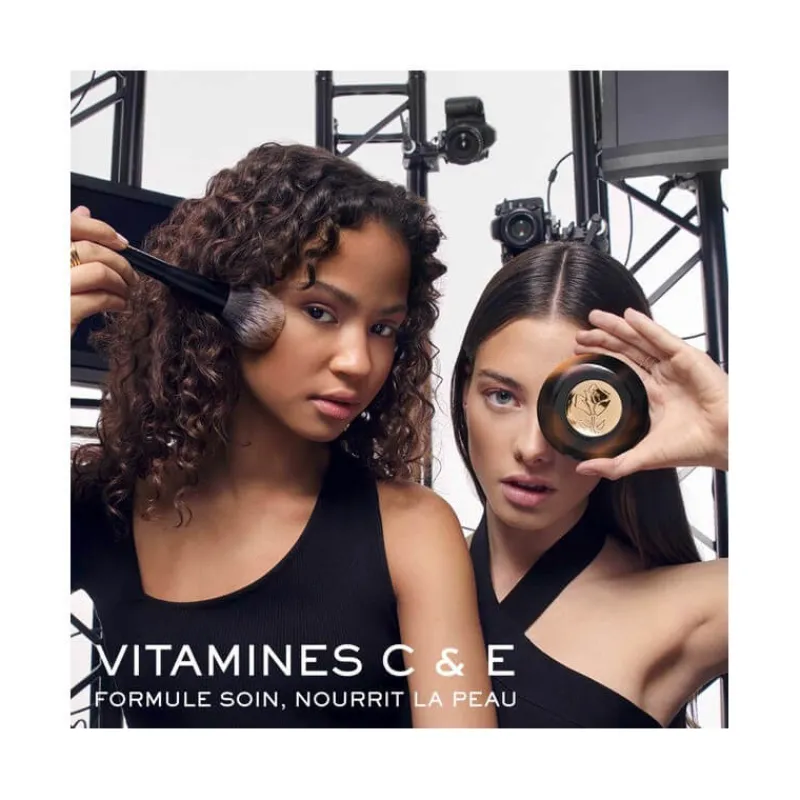 Texture hybride : une application en poudre qui fusionne avec la peau pour un confort et une tenue 24h.