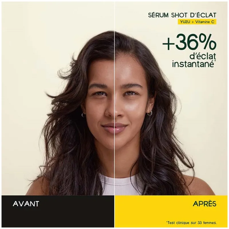 Votre dose quotidienne d’hydratation et d’éclat infusée à la vitamine C ! Ce sérum biphasé à 98% d’origine naturelle* est conçu pour éclaircir et unifier le teint tout en procurant un effet super glow. Ce duo unique de Yuzu & Vitamine C booste instantanément l’éclat de votre peau de +36%** et laisse votre peau constamment hydratée pendant 24 heures***.